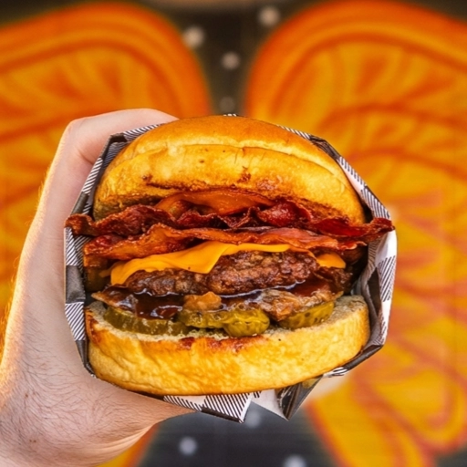 Pão de brioche, 3 blend de 130g cada, 3 camadas de queijo cheddar, 3 camadas de bacon, maionese especial e picles agrid... Ver completo